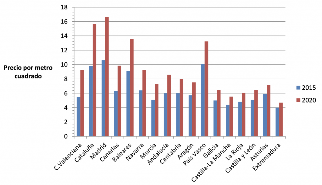 EVOLUCIÓN DEL PRECIO DE LA VIVIENDA EN ALQUILER POR COMUNIDADES AUTÓNOMAS (2015-2020)