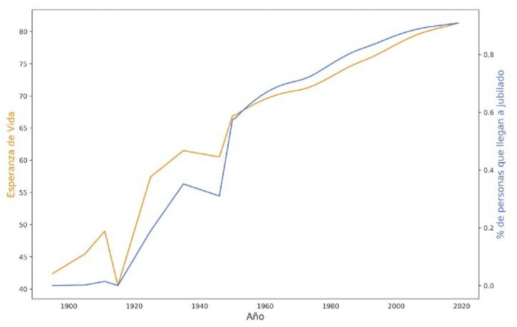 Las pensiones surgieron en la Alemania de Otto Von Bismarck en 1889 primeramente ideadas como un impuesto a la clase media y trabajadora. Esto se debe a que la edad de jubilación por aquel entonces se estableció a los 70 años mientras que la esperanza de vida rondaba apenas los 40, en 1916 no obstante, pasó a ser de 65.